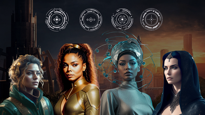 | Physical Description | Attire for each House usually matches the House's colour theme to distinguish them. Lady Vanei, First House: 46 Federation years. Brown curly hair that stops just at the mid-back, and hazel eyes. She usually keeps it up in a ponytail. Prefers a simple appearance and will usually only wear earrings for jewelry. Tallest at 5'2". House colour is gold. Lady Emeyr, Second House: 29 Federation years. Light brown to blonde hair, loose curls, which stops at her shoulders, and brown-green eyes. Often dresses more casual compared to the other Ladies, but will glam up any head jewelry. Fourth tallest at 5'0". House colour is mint green. Lady Relou, Third House: 39 Federation years. Dark brown hair, usually silk pressed, but she keeps it maintained under a headwrap, and dark brown eyes. Attire is usually modest but will reflect whatever cultural event is happening through accessories. She will also be creative with makeup while the other Ladies keep it simple. Also 5'2". House colour is silver. Lady Sama, Fourth House: 39 Federation years. Black, sleek straight hair, almost always pulled back into a low bun, and blue eyes. Strictly wears mobile attire like suits that always have armor woven into the fabric. May sometimes wear a decorative piece of jewelry on her forehead depending on the occasion, but is usually dressed for performance. Third tallest at 5'1". House colour is dark blue. All Lonians have a soft, v-shaped forehead ridge and have the same physical characteristics as Teevs. |